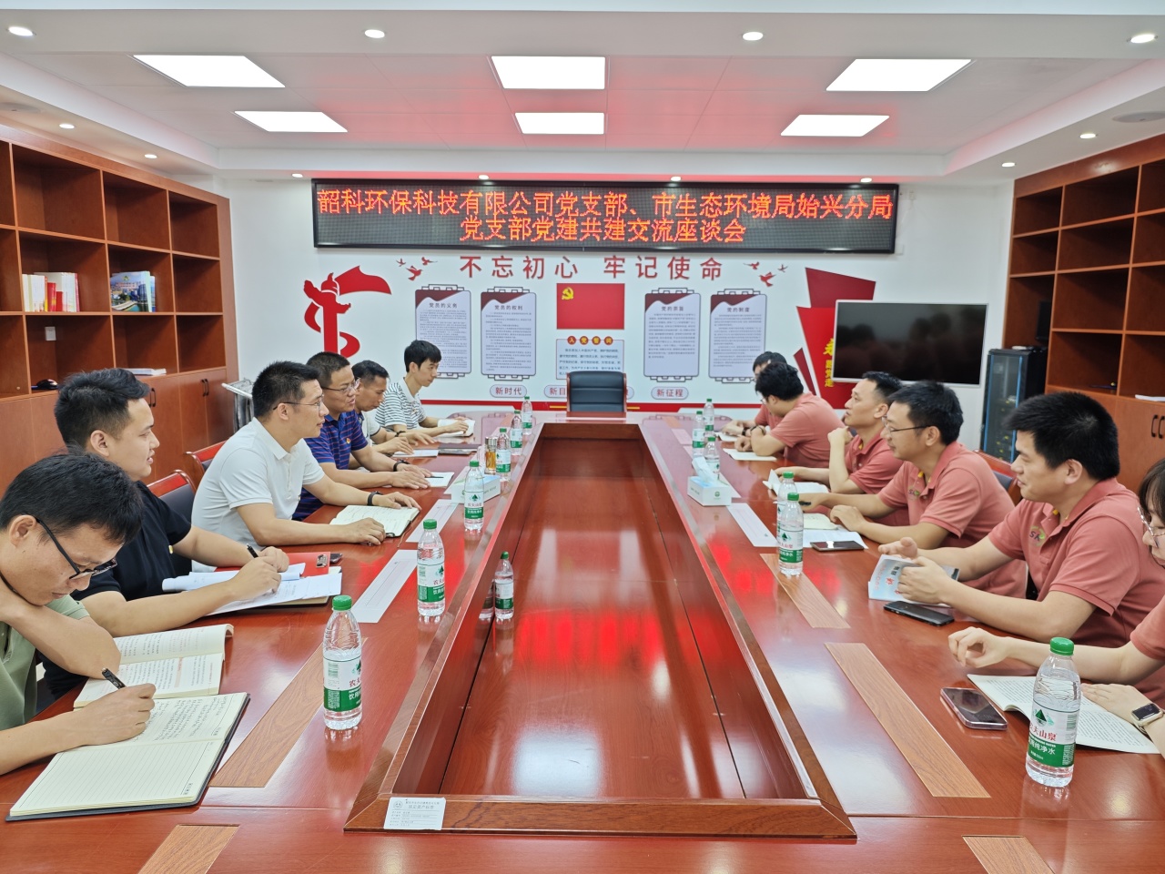 抵達市生態(tài)環(huán)境局始興分局后,分局黨支部負責(zé)人首先帶領(lǐng)我們參觀了紅色文化長廊并詳細介紹了分局的陣地建設(shè),讓我們深刻地感受到他們在黨建工作上付出的心血并積累了陣地建設(shè)經(jīng)驗。在黨建共建交流會上,大家對如何開展好黨紀學(xué)習(xí)教育工作進行了交流探討,就農(nóng)村生活污水治理、生態(tài)文明建設(shè)等業(yè)務(wù)進行了深入的討論研究,我司黨員積極建言獻策。大家紛紛表示要立足崗位,用自己的實際行動保護環(huán)境,讓藍天白云成為常態(tài),讓綠水青山隨處可見。